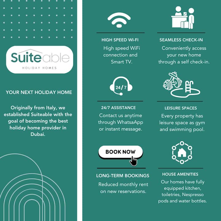 Originally from Italy, we have built Suiteable with the goal of becoming the best holiday home provider in Dubai. We started out small, in the middle of the 2020 global pandemic, when the travel industry hit an all-time low. To our surprise, we found the market ready for our services, and we haven't looked back since.