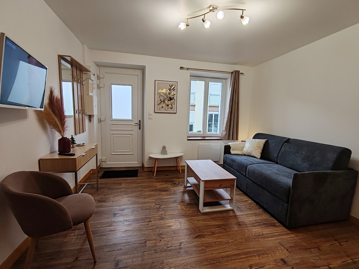 The accommodation is renovated (May 2020). It consists of a kitchen area open to the living room, which opens onto a charming balcony. There is also a shower room with towel dryer and washing machine. The toilet is separate. Finally, there is a small bedroom. Please note, to access the bed, you need to climb a few steps.