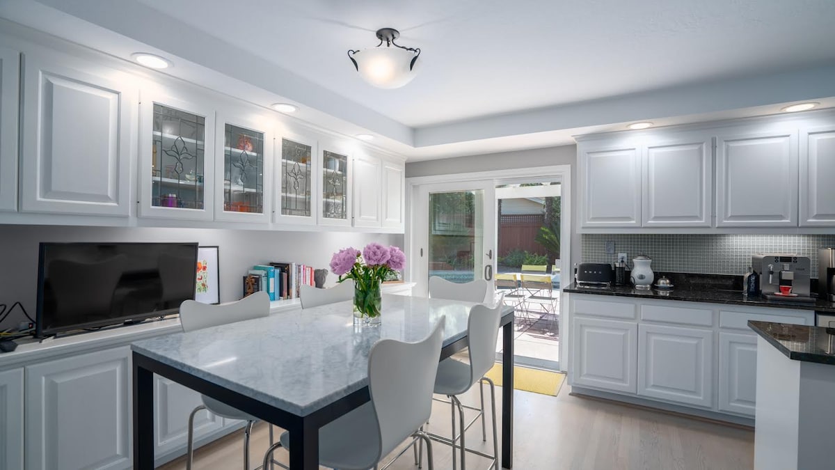 Stunning views of Mount Tamalpais off the deck. Modern appliances, quartz counters and oak hardwood floors. Large windows and french doors allow year round sun. Enjoy hiking and mountain biking at trailheads just a short walk or ride down the road. Make the drive to West Marin and the Wine Country. A cozy lounging space to work remotely, watch movies and local TV or write/create/dream in a space that inspires with sunlight and views. Stroll downtown for music, dining and the Rafael Theatre.