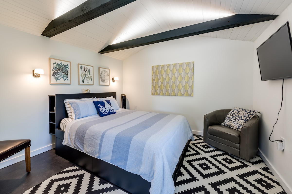 Welcome to The Eloise — a bright, art-filled home centrally-located in the bustling Division/Clinton district of SE Portland. This beautiful ADU has it all. A suite with king bed & bathroom with a luxurious shower; workspace w/ speedy wi-fi; lounge; two TVs a full kitchen, & EV charger. Premium amenities & local treats await you. Tucked into a quiet street just off Division, you’re within walking distance to restaurants, shops, bars, venues, bus & TriMet lines & a 5-minute drive to Downtown.