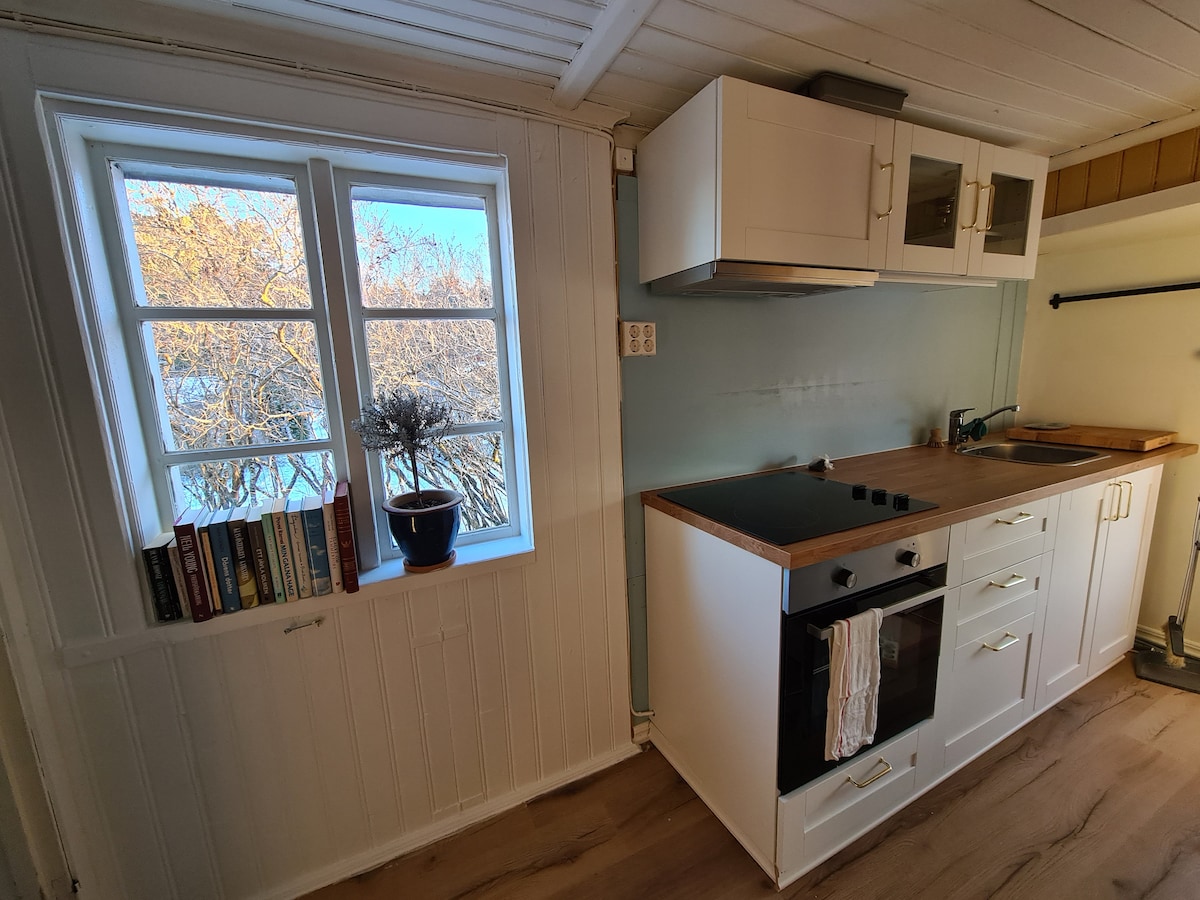 In the small village of Delbo, 10 km north of Sala in Västmanland, lies this little gem. Lea's basement is a small house of about 25 m2 with year-round standard. Works as a self-catering for a long time, but also if you just want to stay overnight. Lea's basement is tastefully decorated with high ceilings, fireplace, kitchenette, toilet and shower. There is a double bed (160 cm and a day bed for two. There is also WiFi and a screen with Chromecast.