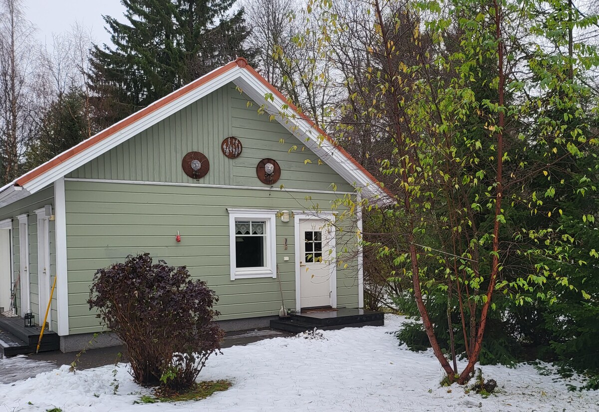 An atmospheric and quiet guest cottage in a quiet area close to the center of Rovaniemi. The property has its own entrance, a small kitchen area, a living room and a private sauna. The cottage is well suited for couples and families. The living room has a double bed and a sofa bed. The kitchen is well equipped for cooking in the cottage. The bathroom was renovated in the spring of 2025. The fireplace may only be used with the express permission of the host. No smoking indoors. No pets.