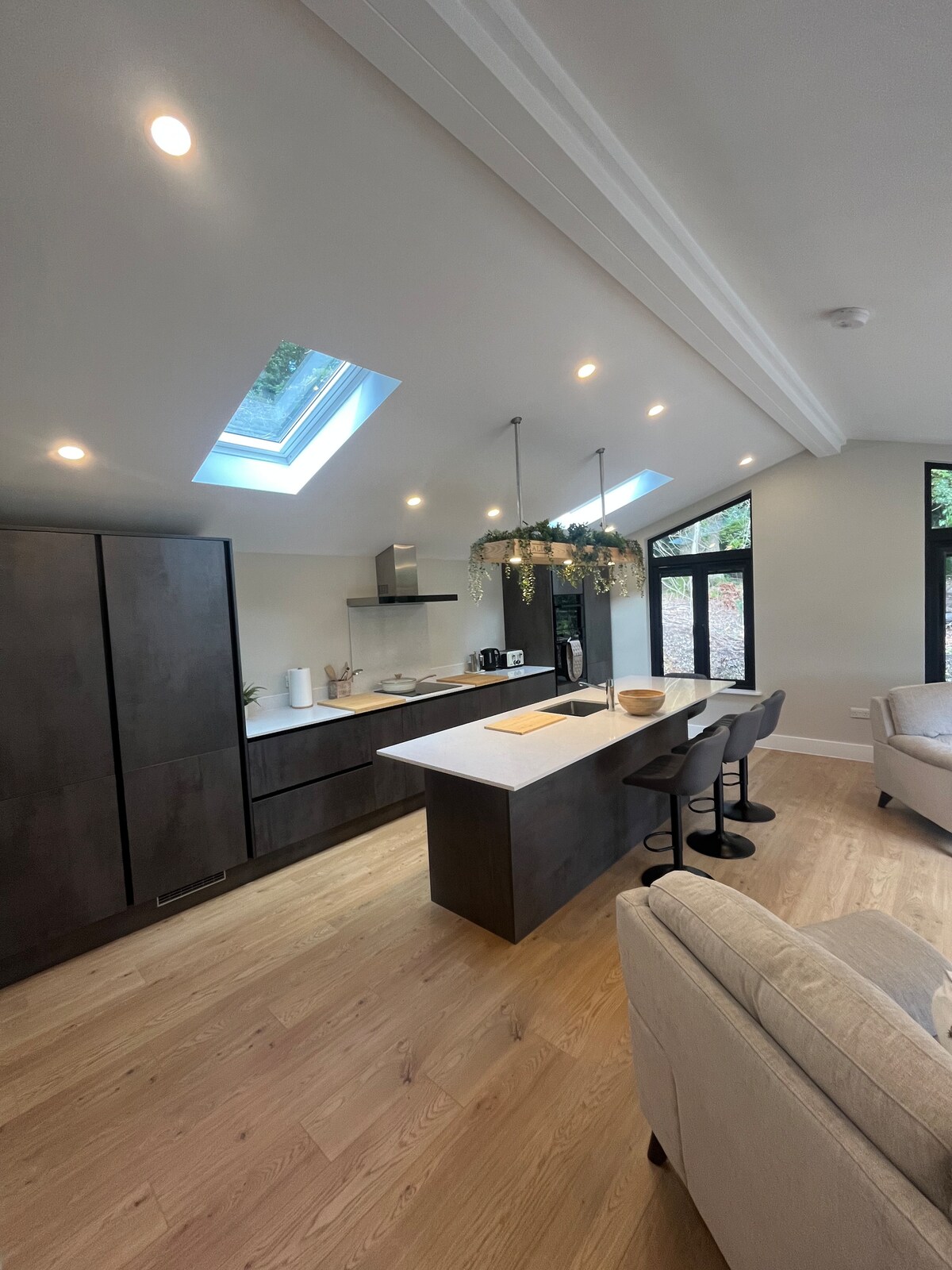 The Annexe is a unique and stylish self-contained unit over two floors. High spec accommodation including a kitchen-diner-lounge, TV & wet room on the ground floor & king size bed, desk, TV and spin bike located upstairs. Well appointed on a private leafy lane 3 miles from Winchester. Picturesque walks are right on the doorstep and it is an ideal ‘escape’ to explore historic Winchester and enjoy the lovely Hampshire countryside on the edge of the South Downs and River Itchen. Understated luxury!