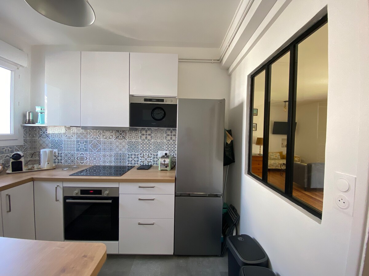 Discover our apartment located in the heart of downtown Royan and 200 meters from its main beach and port. It is located on the 1st floor (with elevator) of a small residence located on the main square of Royan with its many shops. The apartment was fully renovated in the spring of 2024. All amenities are brand new. It is fully air-conditioned, and decorated in a cozy and elegant style. Its balcony is particularly pleasant during the summer.