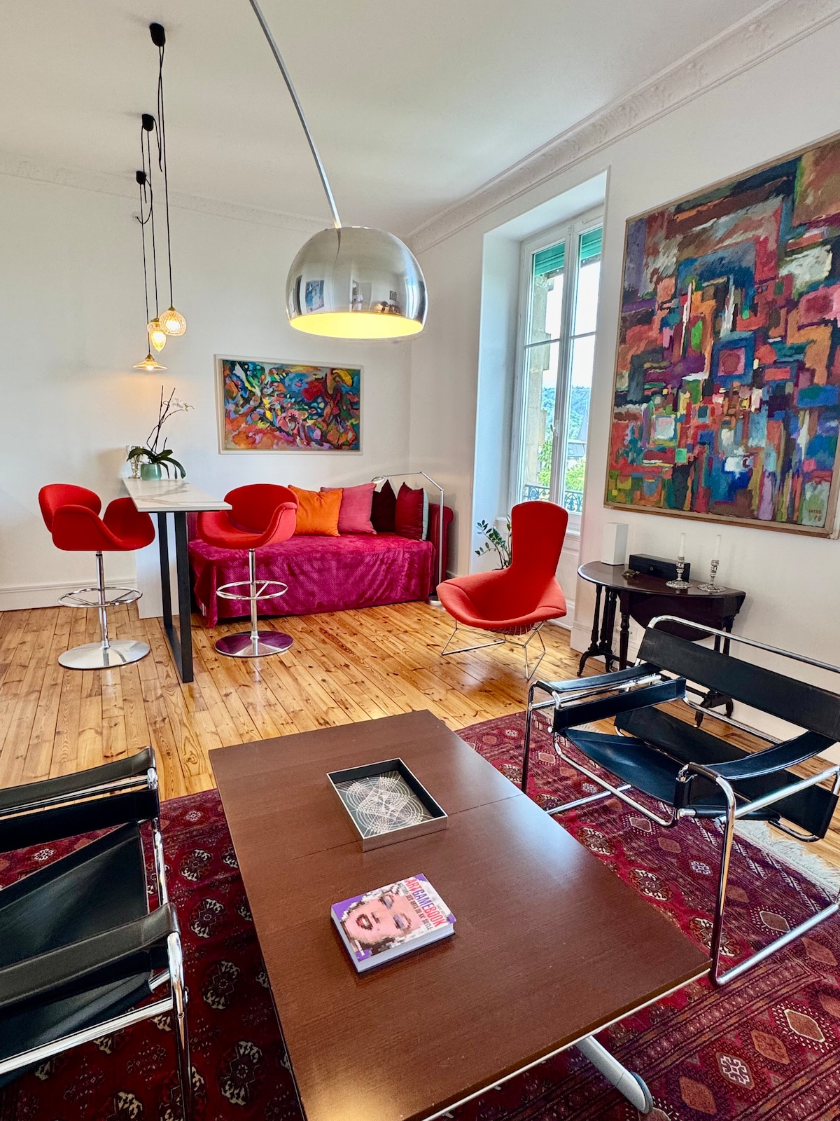 Take your time in this bright, serene and spacious accommodation (63 m2). At the entrance to the Thermal Park of Royat, in the Valley, facing south, the location is ideal. Through the park to reach the Thermal Baths directly, or in each direction 5 minutes away, to all shops, services and transport routes.