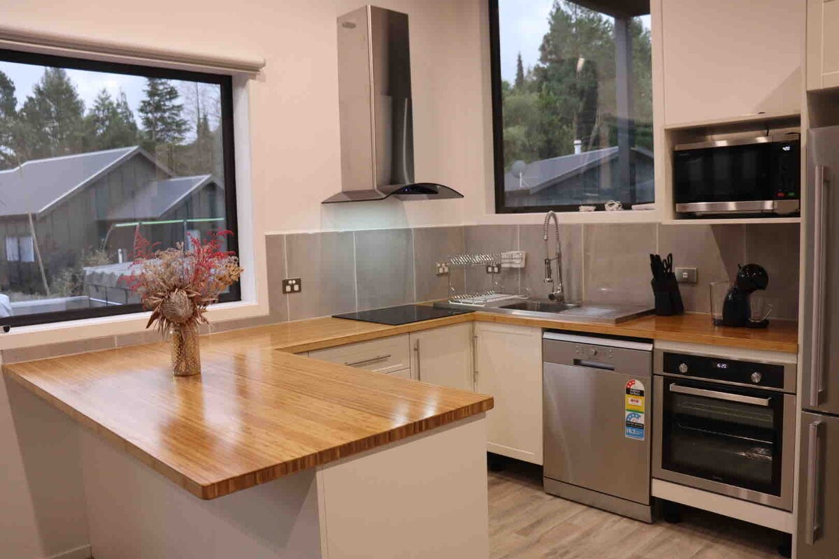 A freshly renovated Chalet, with all the mod cons. Plenty of space for two couples or families with two bedrooms upstairs plus open plan living, bathroom and laundry downstairs. This is your home away from home, in a quiet cul-de-sac yet walking distance to National Park Train Station, Station cafe, Macrocarpa Cafe, Schnapps Bar and Park n Ride for transport to Whakapapa ski field in the winter. Mountain bike trails await and we are on the doorstep of the famous UNESCO Tongariro National Park.