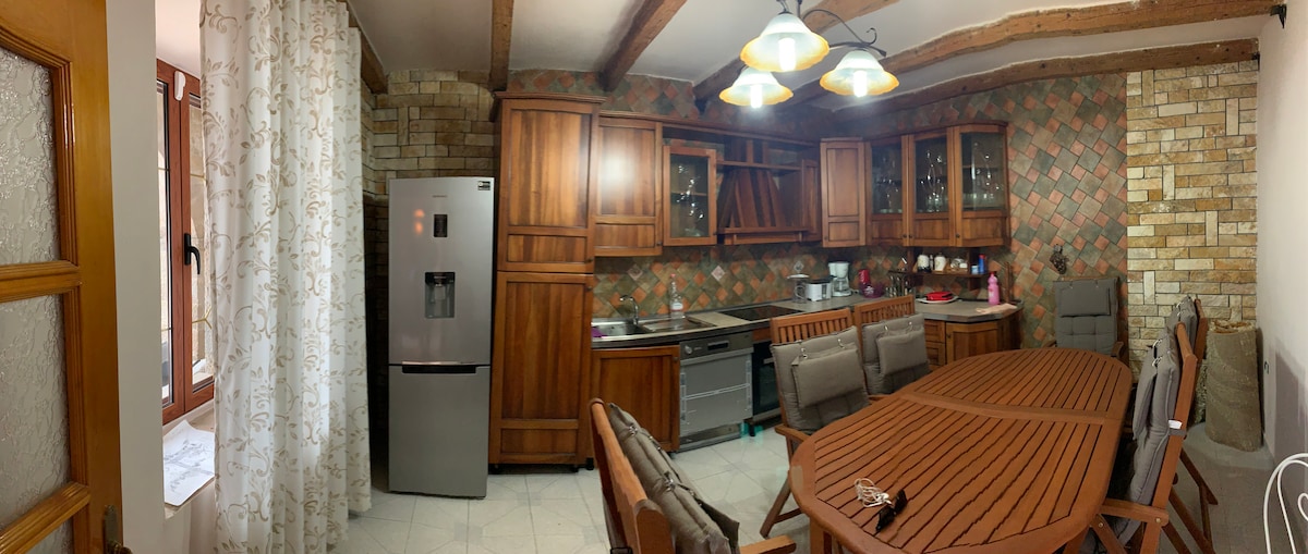 Enjoy a stay at our cozy family's villa to get a full experience of your stay in Kruje. The house is a century old stone house built by my grandfather, and has since been carefully renovated to preserve its local authenticity. The location is also very favorable by being just a 5 minute walk away from the Old Bazaar, 13 min walk from the castle of Kruje and a 15 min drive to Sari Salltik.