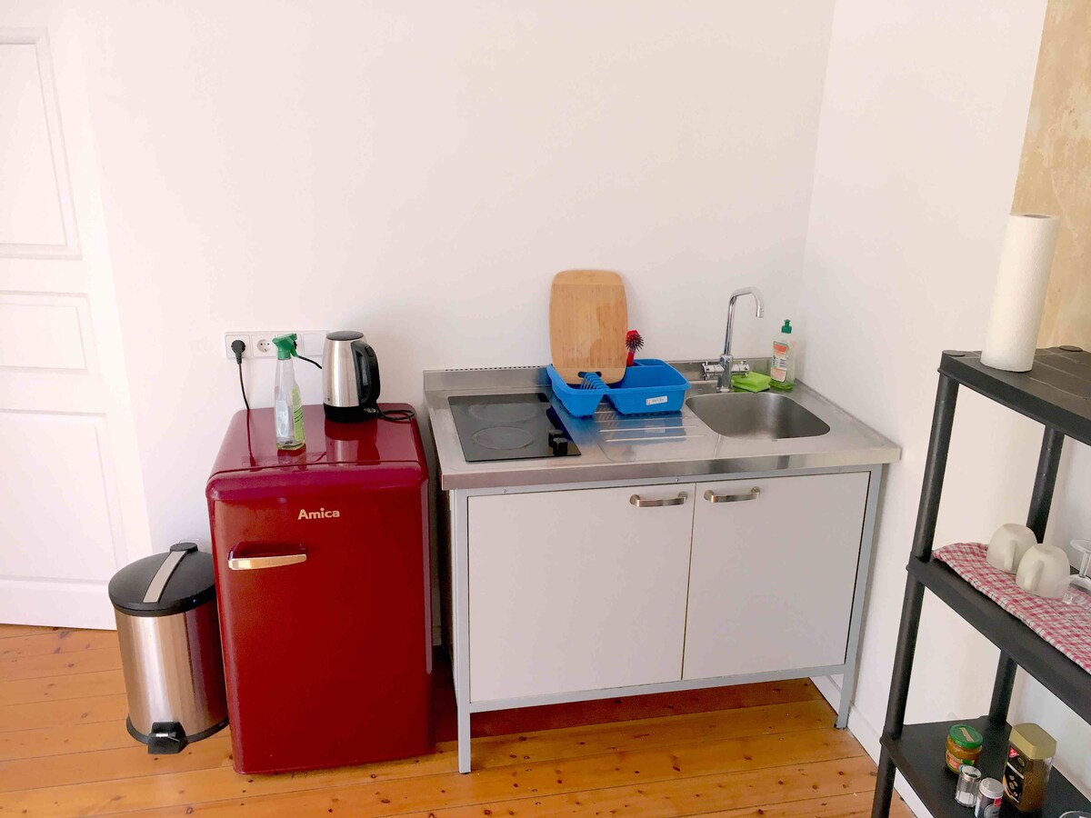 Our small guest house is well connected, but still far away from the hustle and bustle of Berlin. In the middle of the forest and only a ten-minute walk from Lake Müggelsee, our house offers the perfect accommodation for a short vacation in the countryside or for day trips to the city. Up to four people will find sufficient space on 30 m² and with the well-equipped kitchen, a private bathroom and fireplace, no wishes should remain unfulfilled. We look forward to welcoming you to Müggelheim.