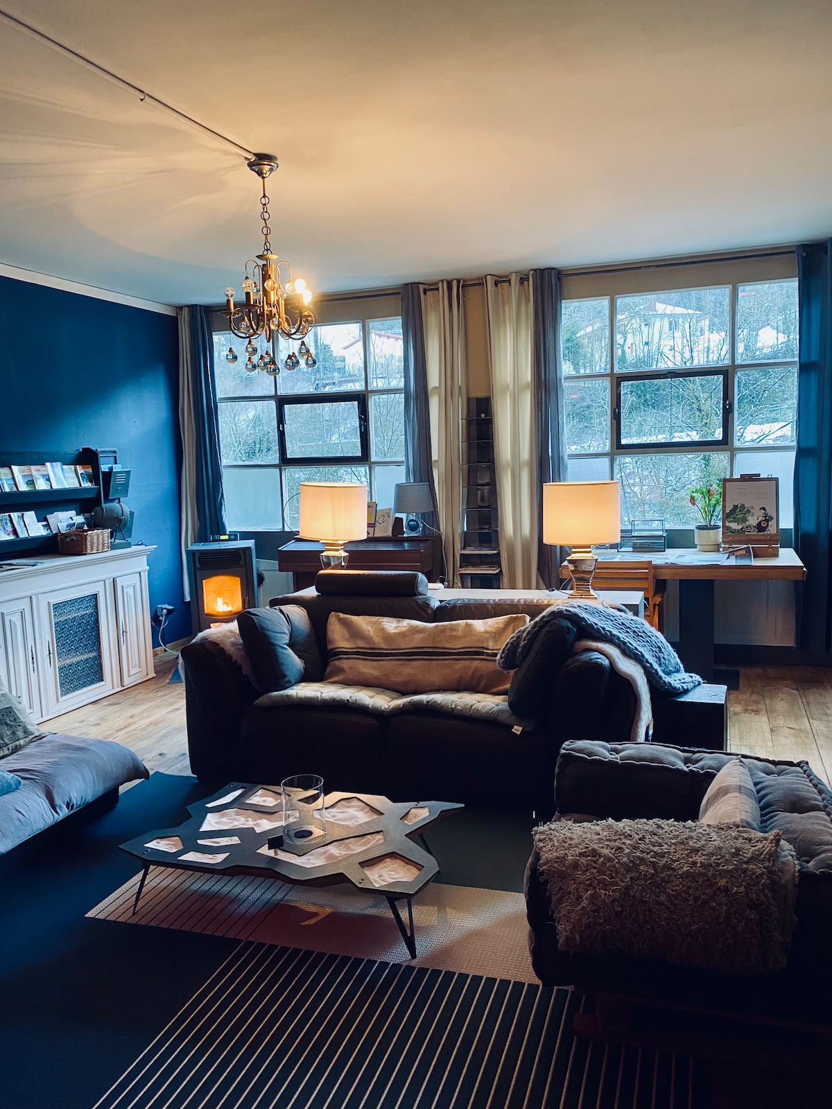 Baptisé "Un Autre Monde", this atypical place is installed in an old printing press, close to the city center. You have more than 250 m2 of fully equipped and personalised spaces with the unique furniture I create. You also have a games room and a relaxation area (by reservation and shared with the other apartments). A large garage allows you to park at least 3 cars and motorcycles. You will have a garden by the river accessible by a few steps.