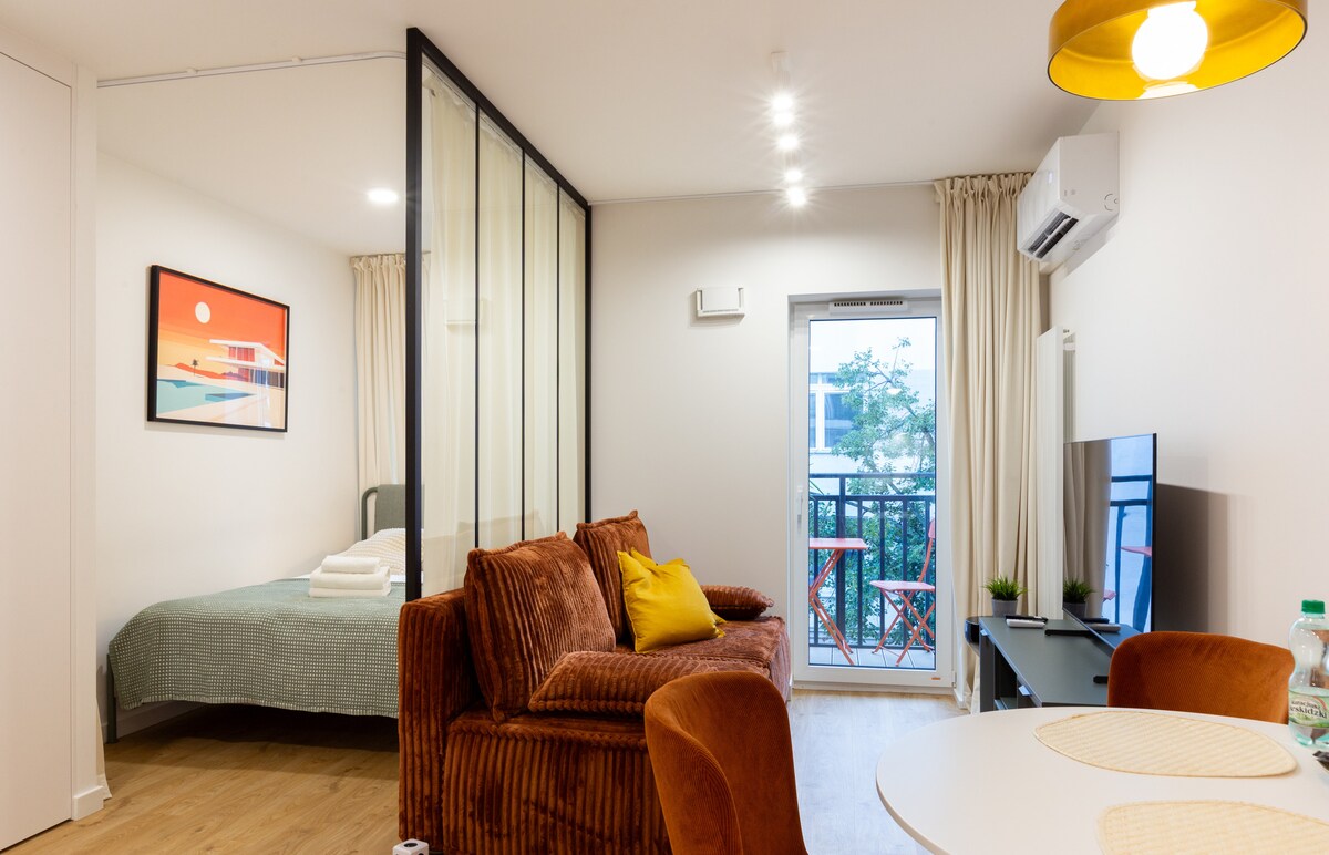 Enjoy a peaceful and stylish stay at this centrally-located place. A newly built, beautifully furnished apartment, perfect for a quiet stay in the heart of Gdańsk. Located on the greenest side of the city center, right next to Góra Gradowa. Although historical and cultural sights, shops, and restaurants are only a 10-15 min walk away, the area feels peaceful and secluded. The place offers a unique, cozy, and very comfortable design, perfect for a couple and a weekend escape.