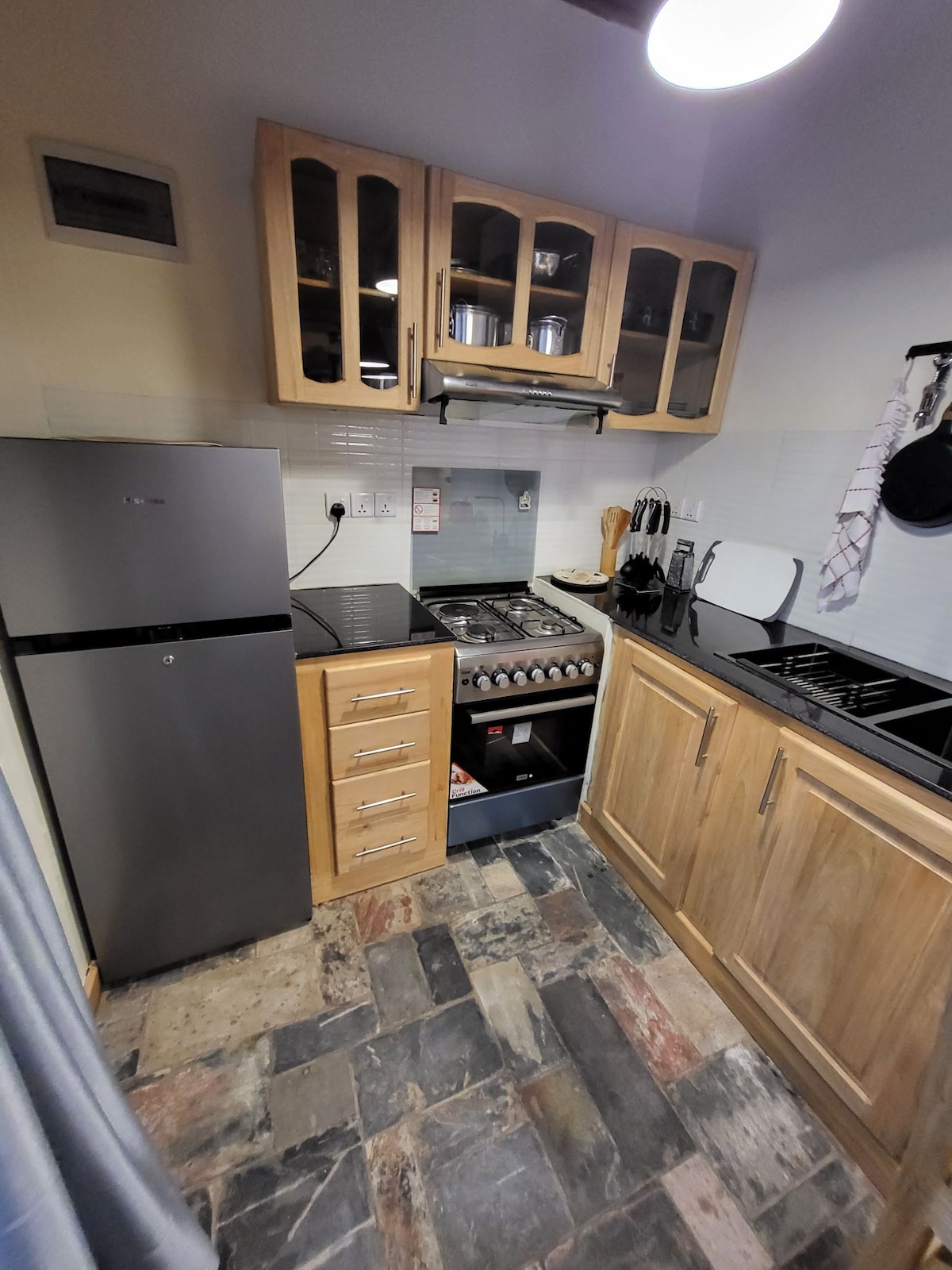 99 Apartment (Juru) is a contemporary newly built complex in the ❤ of Kigali. This modern 2pp bedroom apartment is located in the residential area of kigali making it calm &quite for a good rest. It has a 55” tv, Cable Tv, Netflix, PrimeVideo & a fast internet for all our guests, the kitchen is well equipped for day to day cooking. Complex has amazing rooftop Lounge area for all guests to enjoy with a breathtaking view. Complex has ample parking with 24/7 security guard &car washing services.