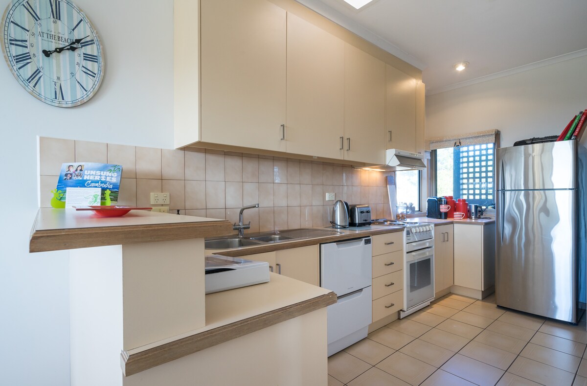 Perfect all year round, relax with family or friends in this renovated cosy beach house. Eleanor's Escape has everything you need for a relaxing beach holiday. Ideally located in a quiet street, the beach just 450m away. A great base to explore award-winning wineries, hot springs, national parks and golf courses, all a short drive away. After a day at the beach, enjoy the outdoor shower before relaxing on the deck taking in the lovely garden, playing board games or table tennis.