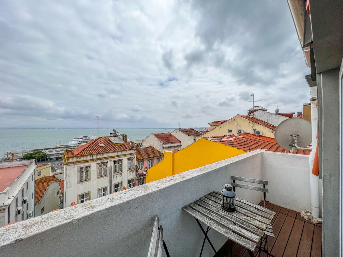 With a beautiful view of the Tagus River, this loft can accommodate up to 4 people. Modern, it has a golden glass ceiling and a balcony overlooking the river. With a beautiful view of the Tagus River, this loft can accommodate up to 4 people in its 94m². Modern, it has a golden glass ceiling and a balcony overlooking the river. Situated on the 4th floor with elevator, this atypical loft is located in the Alfama neighborhood. The Tagus River is 3 minutes away, as is the Terreiro do Paço metro station.
