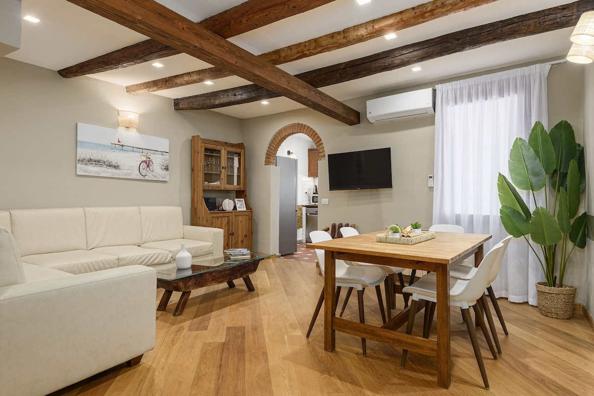 Immersed in the vibrant San Frediano neighborhood, this elegant apartment redefines urban living in Florence. Located on the first floor of a typical Florentine building with views of Piazza Tasso, you can enjoy the authentic local atmosphere with cafés, restaurants, artisan shops, and bars just steps away.