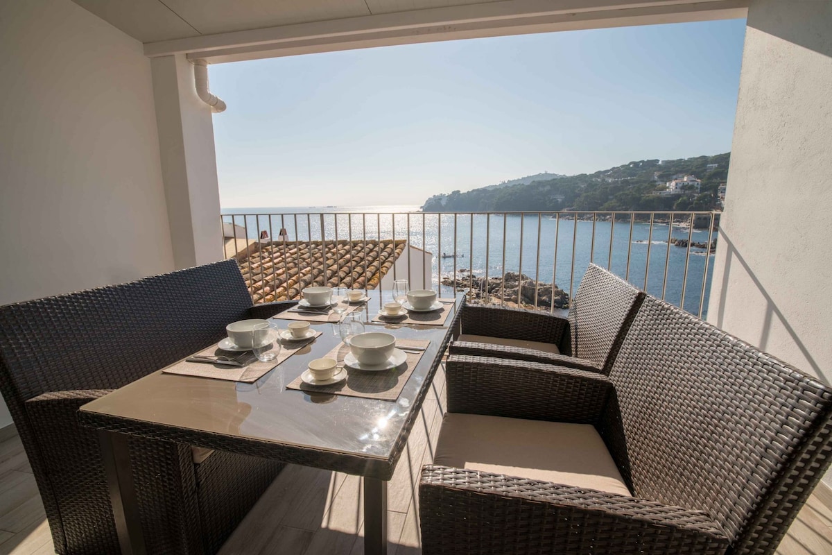 Front-row apartment. Have breakfast, lunch, and dinner with ocean views in a fully-equipped apartment. Relax watching the moon or a starry night, sleep and rest to the sound of the waves, wake up to a sunrise on the horizon. Located in a quiet area, a 10-minute walk from downtown Platja d'Aro, where you will find all kinds of restaurants, shops, and leisure. A few km from Palamós, Girona, Calella, Tossa de Mar, Sant Feliu, S'Agaró, Begur...