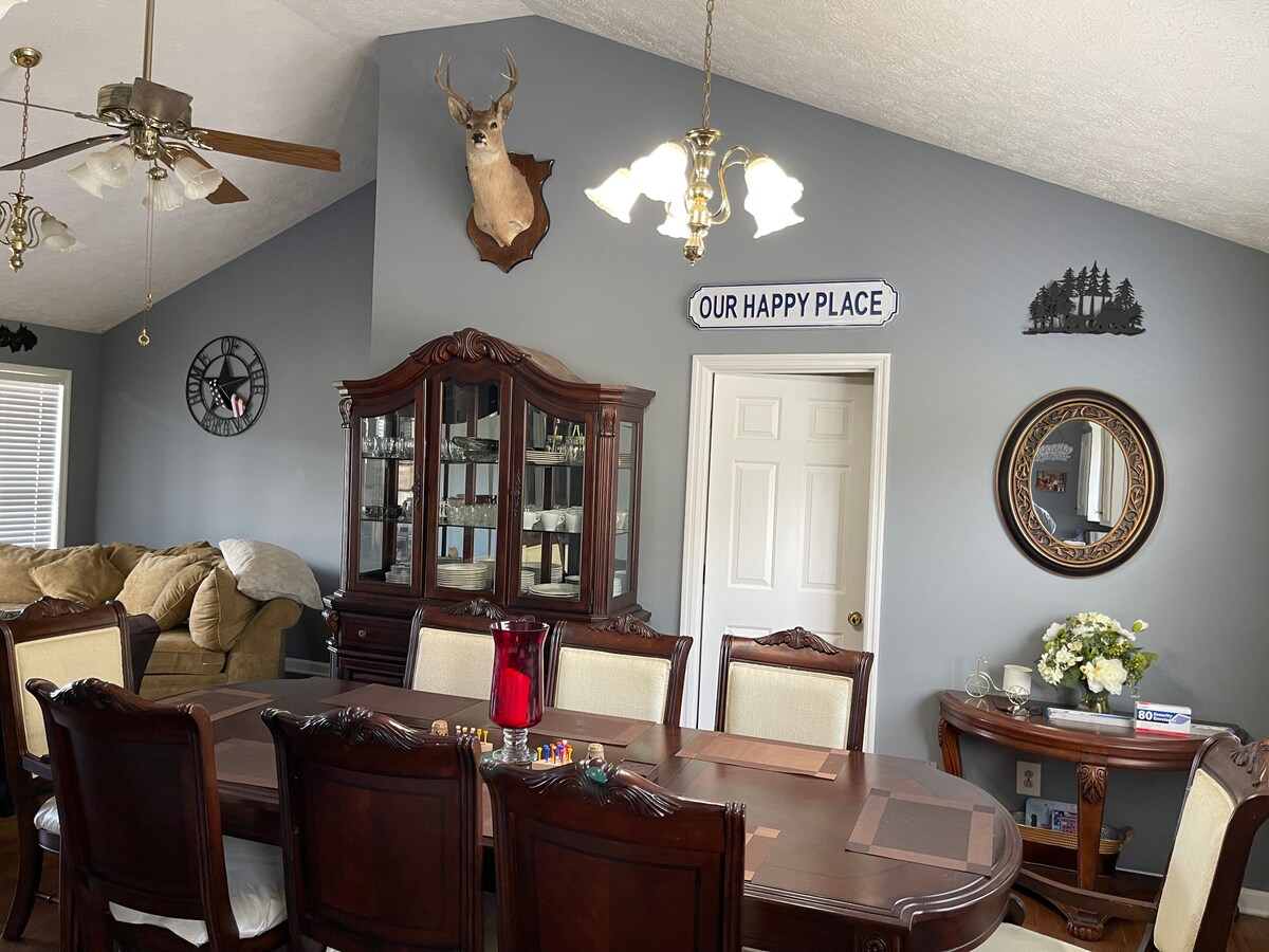 Tennessee Retreat Log Cabin, nestled in the hills of the Eastern Highland Rim, has everything you need to escape in style. Amenities (like WiFi and Cable TV) let you enjoy the serenity of the woods with casual or formal dining, antique or necessity shopping, water activities on Dale Hollow Lake - a 15 minute drive, wineries, historic & natural attractions & live entertainment. Perfect for business or pleasure trips, extended stay or hosting weddings or events on the extensive lawn. Welcome!