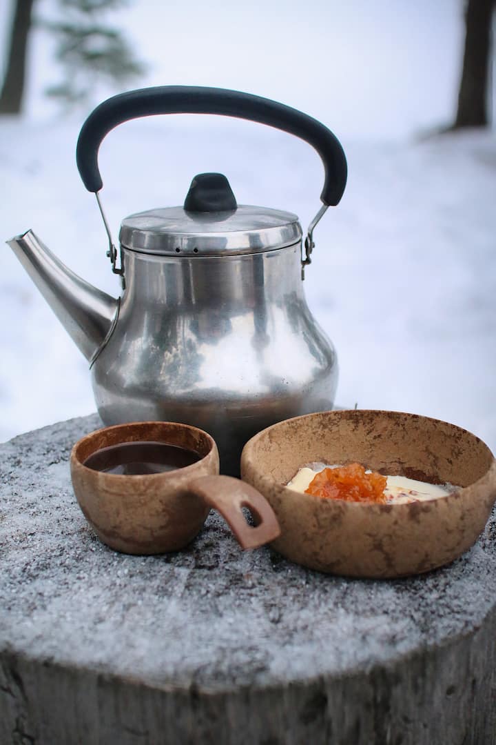 Nuuksio National park hiking with campfire lunch