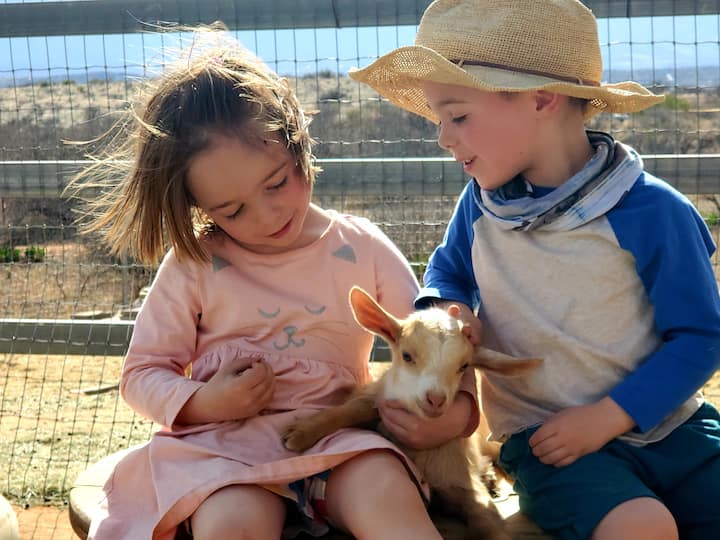 Cuddles and animal therapy at a petting farm