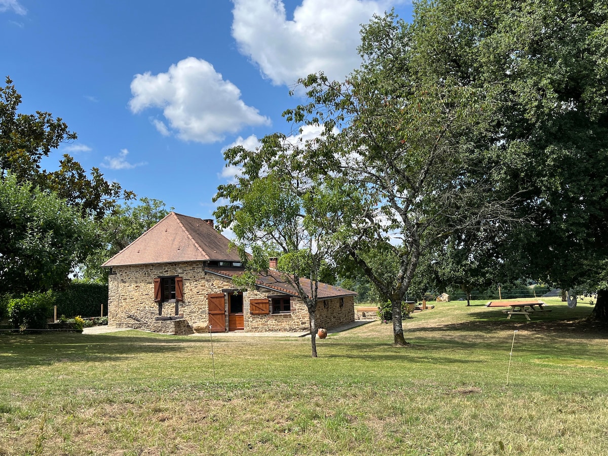 Come for Autumn Winter 2025/6 with a 30% reduction!! (Already applied) A charming farmhouse set in 10 hectares of land, in an enviable position with exceptional views. To be enjoyed at any time of year. Search for orchids in Spring; laze by the (shared) infinity pool in Summer; enjoy roast meats and chestnuts in the fireplace in Autumn or cozy up next to the Christmas tree with family in Winter. Saint Robert, one of ‘Les Plus Beaux Villages des France’, is only a few mins away or 20 min walk.