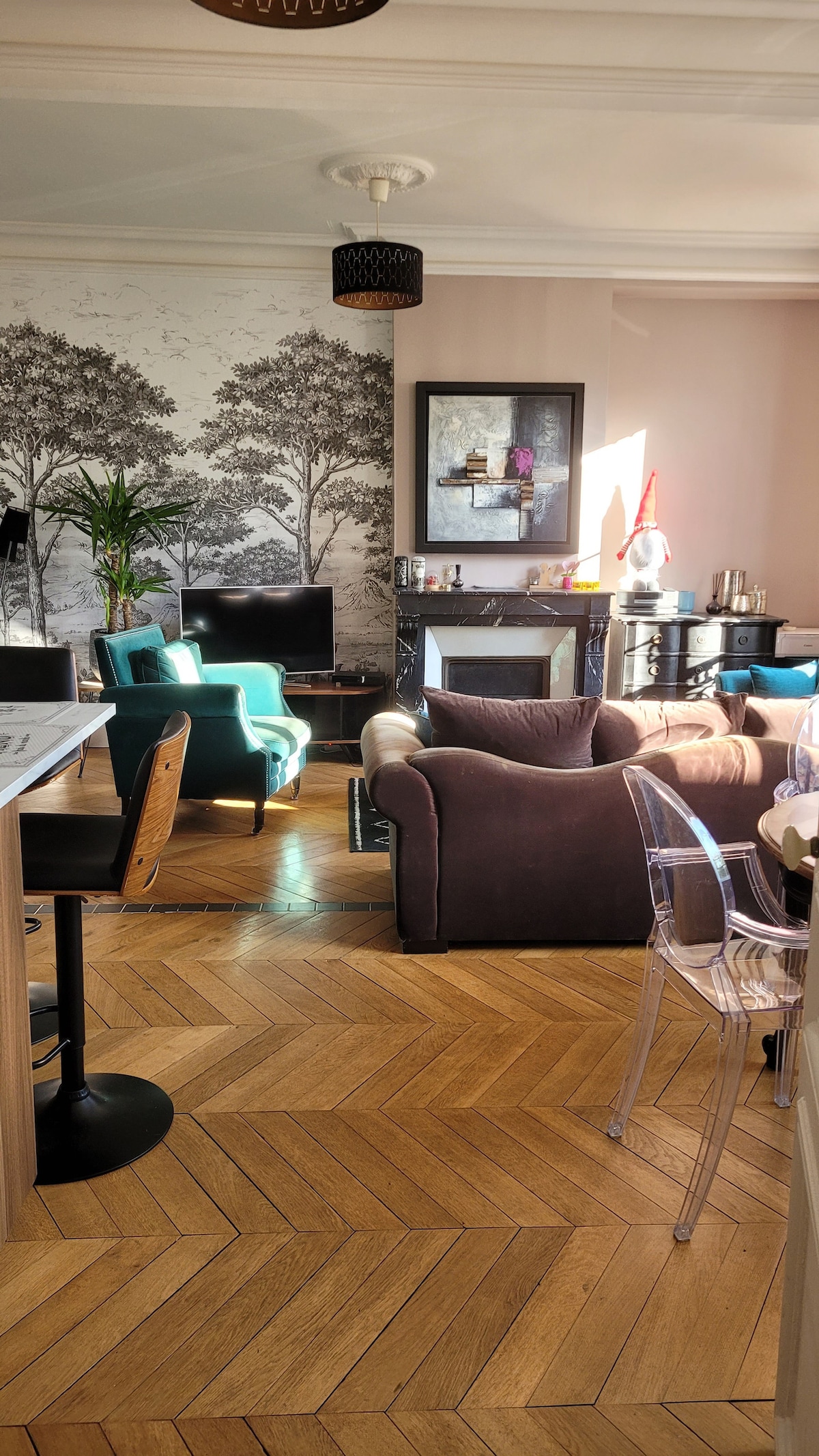 Situé à Cergy Port, à deux pas des restos et du bord de l’eau, cet appartement combine design et confort. Chaque détail crée une ambiance joyeuse et apaisante : mobilier rétro chic, fauteuil vert moelleux, cuisine graphique et frigo vintage. La chambre offre une vraie bulle de calme avec sa literie haut de gamme et son coin bureau. À 10 min à pied du RER A, de l’ESSEC et de la base de loisirs, c’est le point de chute idéal pour un séjour professionnel ou un week-end détente. Wifi et tv connectée