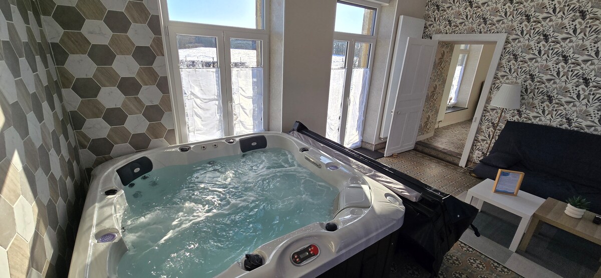 Escape to our historic farmhouse. The soul of a 1617 building (ceiling moldings, cement tile floor) meets modern comfort with a jacuzzi. Enjoy: - Large main room: Jacuzzi (6 seats), equipped kitchen, dining area - Large bedroom: 160 x 200 bed, wardrobe, reading chair - Extra bed for 2 people (sofa bed) - Bathroom and toilet on the bedroom floor - Free parking (large enclosed courtyard with carport) An unforgettable break awaits you!
