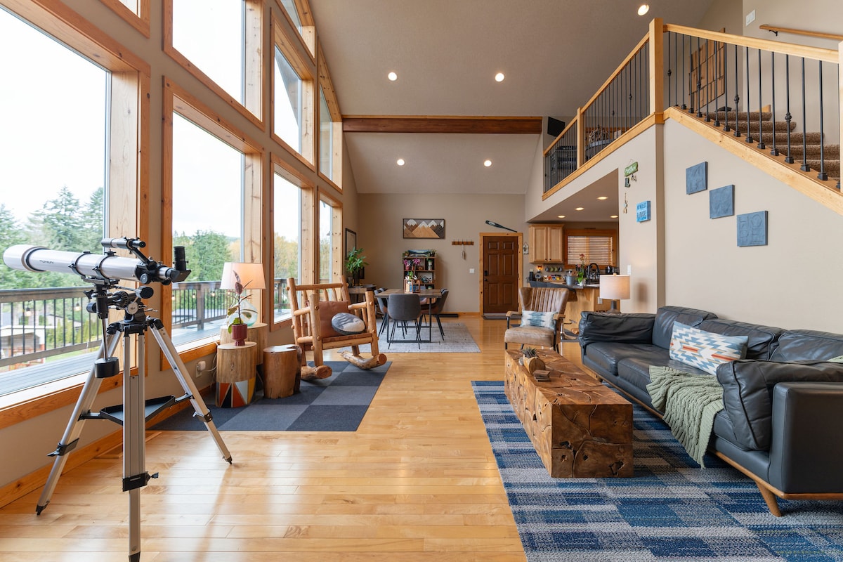 Built in 1976 with original shiplap, exposed beams + cedar throughout. A 2019 remodel designed by five star Seattle Interior Designer, preserving the best and adding modern updates. Wood burning fireplace, vaulted ceilings, deck with a killer view + unique design details around every turn make this a vacation experience. We are in a small quiet neighborhood where you can unplug + recharge, do nothing or do everything the area has to offer with a plethora of year round activities.