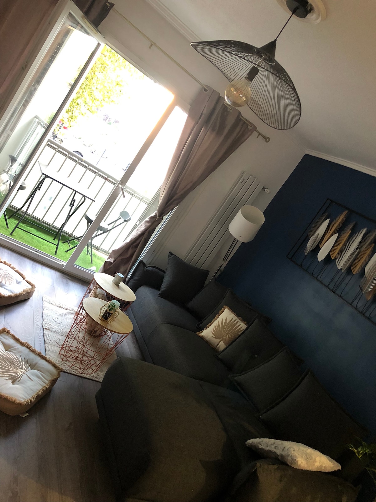 Apartment of 48m2 (T2), very bright, for 2 to 4 people. It consists: - A fully equipped kitchen open to the very cozy living room: fridge/freezer, induction, oven, kettle, microwave, coffee maker... - A master bedroom with a 140 cm bed, with a bathroom and a dressing room - A living room with convertible sofa (140), television, fiber/box, - Separate WC, with washing machine, - Balcony of 15m2, not overlooked, with garden table. Bed linen and toiletries provided