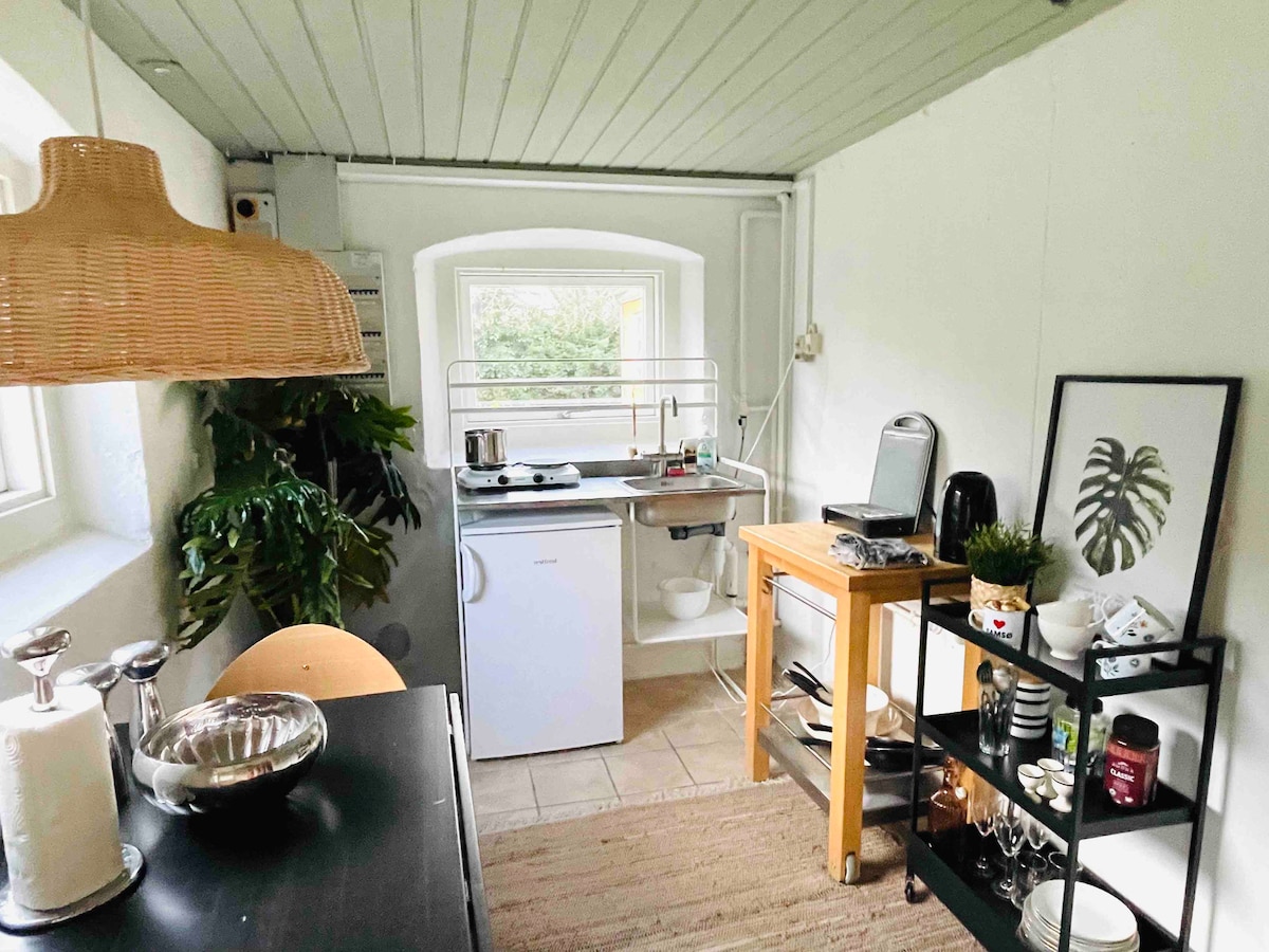 Our annex consists of a bedroom with a kitchenette and a bathroom with a shower. There is a double bed, dining area and kitchen with fridge, electric kettle, toaster and combination oven. (No hot plate) There is free coffee/tea. There is a patio door out to private tile terrace with garden furniture and gas grill. It is possible to have a car/bicycles parked in the parking lot. SuperBrugsen is 100m and net 400m. There is a cinema about 50m from here and several different eateries nearby. The annex is located up to a green space.
