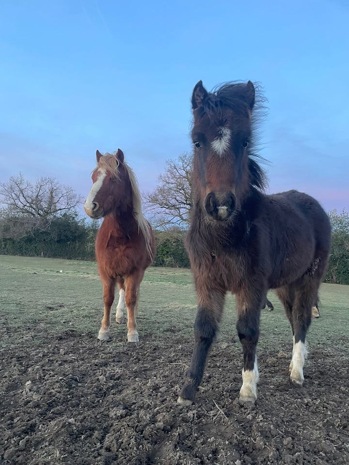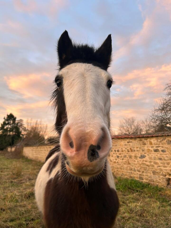 Horse grooming in the countryside