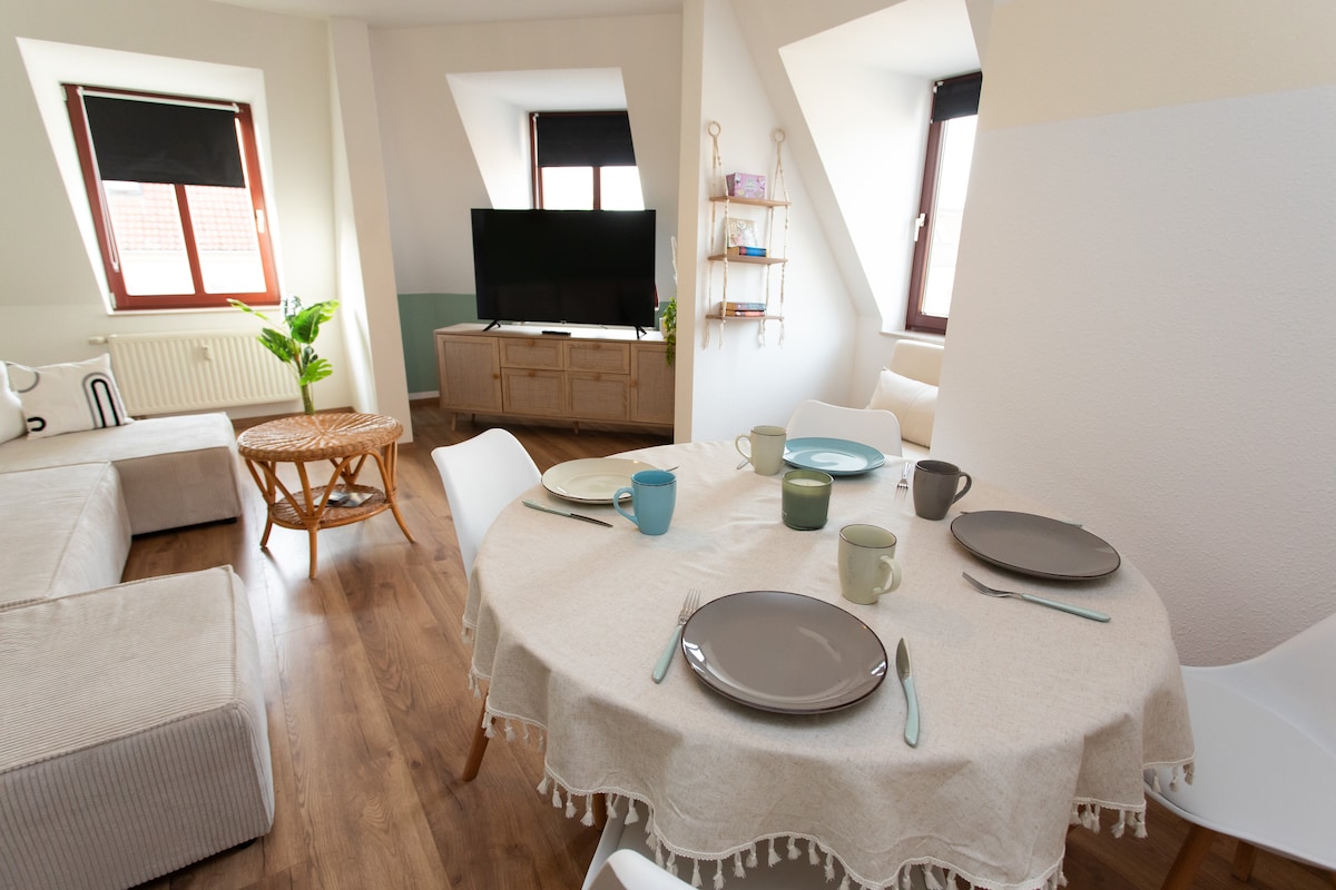 Enjoy a stay right in the city center of Leipzig. - 2 bedrooms - Modern bathroom - Modern kitchen – View of the town hall tower from all rooms – Washer & Dryer - Hair dryer - Linens and towels – 2 double beds and 1 pull-out single bed - Stove and cooking utensils - Nespresso coffee maker - Dishwasher – Smart TVs with Amazon Prime Video series and movies included – Wi-Fi - Elevator - Blackout curtains I look forward to welcoming you.