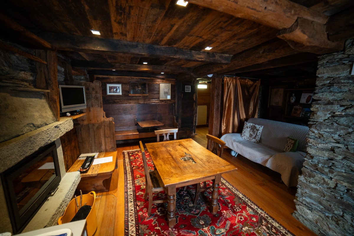 Romantic open space, basement apartment, ground floor in ancient stone chalet. The apartment offers a comfortable french bed, kitchenette with table, bathroom with shower. Ideal for winter and summer vacation lovers. Very close to the village center where you can find typical restaurants and all services (supermarkets, gym, swimming pool, SPA). The Cime Bianche lifts are easily accessible with the free shuttle bus to the house. Cime Bianche connects Valtournenche to Cervinia and Zermatt.