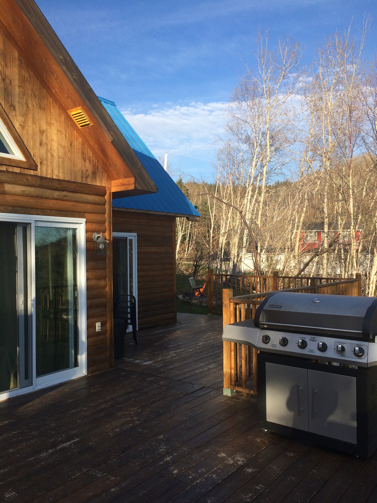 Small Scandinavian chalet for two people ideally located to enjoy the attractions of Charlevoix. It has a thermal circuit (hot tub, sauna, hammam) Very intimate and in the middle of the woods, the view overlooks the majestic river and the mountains in the distance. All the modern equipment is there and the comfort is absolute A/C and outdoor fireplace. The open concept design was designed for an immersive experience in nature: large windows, panoramic shower. Access via a private road at 500 m.
