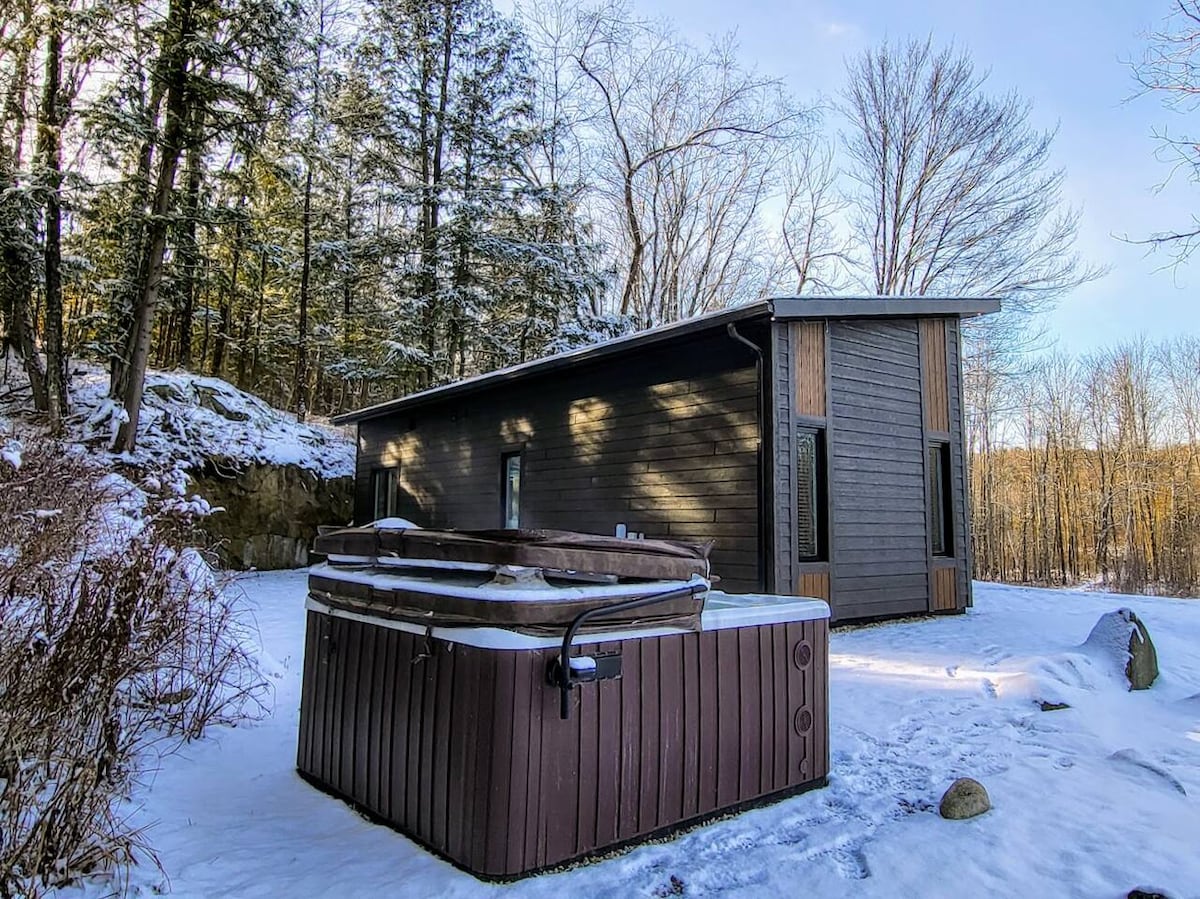 On the edge of a lake, Gatineau Park is a superb A chalet perfect for disconnecting from the city while being ideally located for you to enjoy all that the Gatineau/Ottawa tourist area has to offer. Our mini-chalets are equipped to allow you to relax with their spa or to work remotely in their office arranged for this purpose. Our cottages will be a place where you will rush to come back since you will feel at home here.