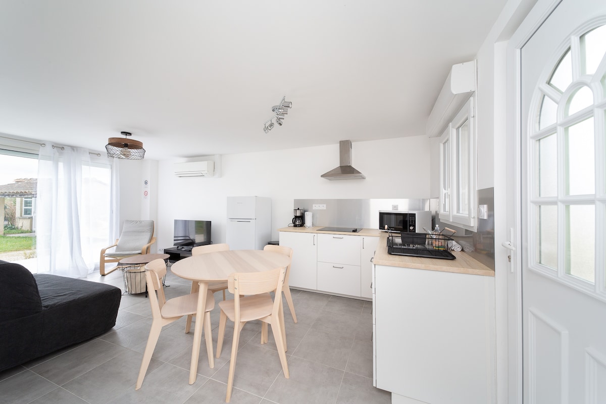Located between Jonzac Thermal Town (15 km), and Montendre (7 km), this house offers accommodation consisting of two bedrooms and a living room (living room/fully equipped kitchen). A dining area awaits you in the shade of the linden tree. You are ideally located between Cognac, Saintes, Royan and Bordeaux. You can get away from it all in our countryside located between land and sea, and discover our heritage along our Charente River.