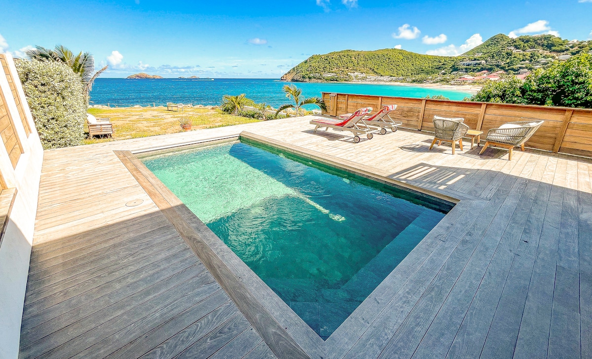 ETOILE DU NORD is located facing Flamand beach, from which you can enjoy the exceptional view from every corner of the villa modern, functional, it is ideal for a couple or family with large children who will appreciate the independence of the second bedroom located on the lower level. All you have to do is cross the road to get to the beach, whether it's for a morning swim in the rising sun, a lazy day, or an evening stroll along the bay .