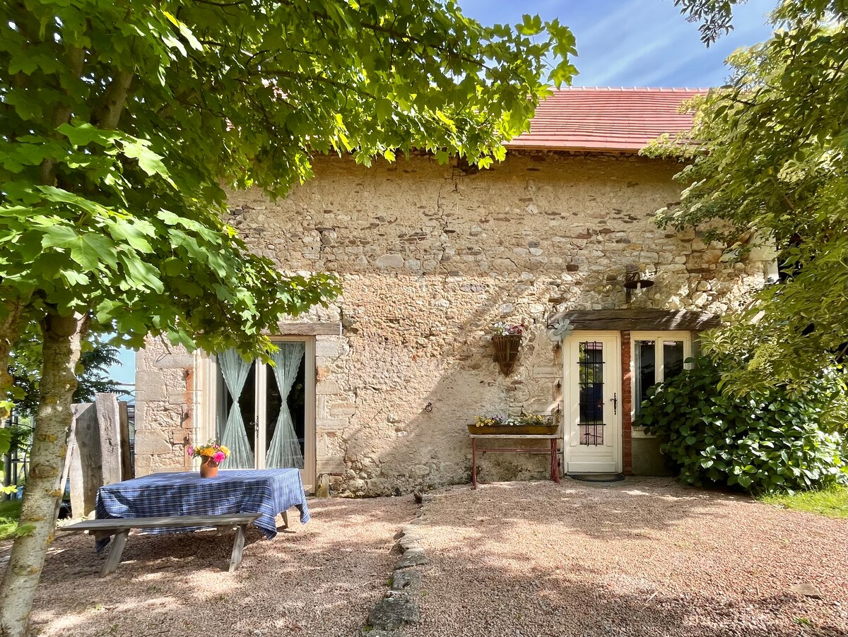 In the Sioule Gorges, about 500 meters from the river. Quiet, in its green setting. No neighbors nearby. The cottage is independent of the owners' home. It is an old house tastefully renovated: parquet, exposed stones, exposed framework. Beautiful view. It has a covered terrace, access to the (unheated) swimming pool from June to September. The sauna (wood-fired) is accessible all year round and promises you perfect moments of relaxation.