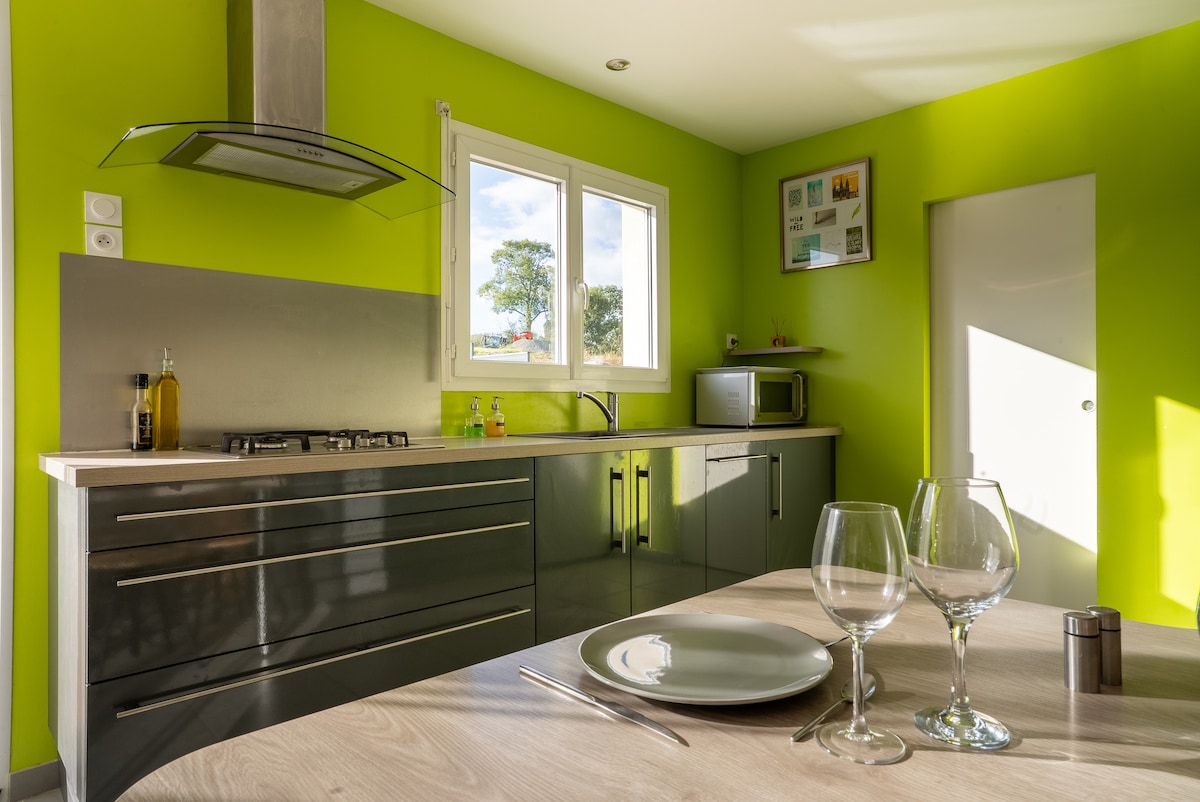 For a night, a weekend or a week, come and recharge your batteries in a cozy wooden cabin, on stilts and with all the comforts! You will enjoy a para-hotel service, the bed (queen size) is made, towels are provided, cleaning and disinfection of the room are included. The large bathtub promises moments of relaxation. The kitchen area allows you to be independent.