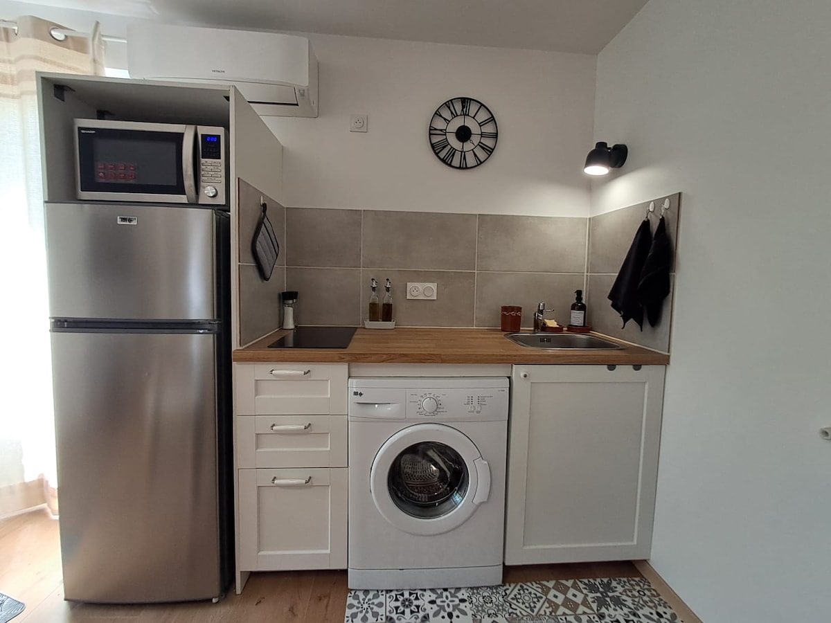 Studio 20 m2 (no separate bedroom) located in a quiet place, close to amenities, bamboo grove, steam train of the Cévennes, swimming located on Anduze, Trabuc cave, Maison Rouge museum, the scribe, Ales mine, Nimes 30 min, Grau du Roi beaches 1h, Pont du Gard 1h, Uzes 45 min (Haribo sweet) Sheet, towels and cleaning supplies provided. A few coffee capsules offered to start your stay. Welcome gift for stays of one week or more. Pets not allowed.