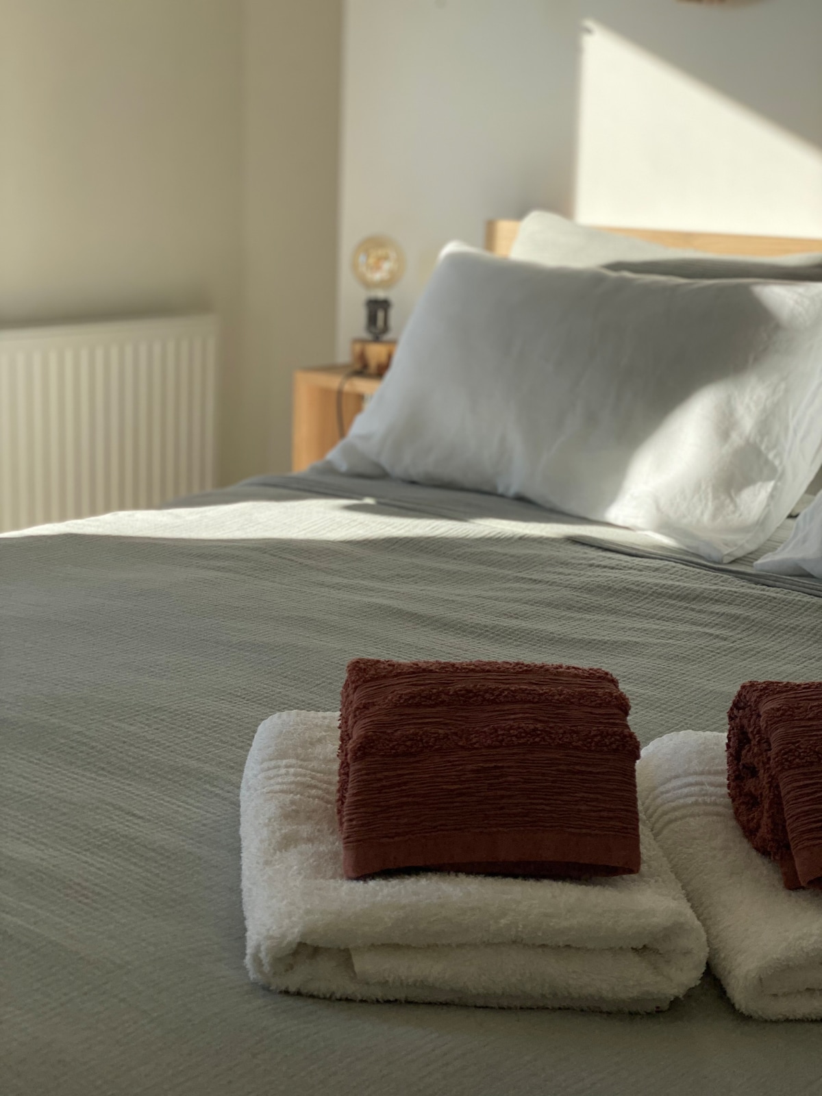 A beautiful guest room, on the 1st floor, with a private bathroom and toilet. Possibility of configuration in 2 beds of 90 cm for 2 separate guests or 1 king size bed of 180 cm for a couple. You will enjoy resting, meeting, in an independent living room on the ground floor. Breakfast (included in the rate), prepared with regional products, will be served indoors or on the terrace depending on the weather or your desires.
