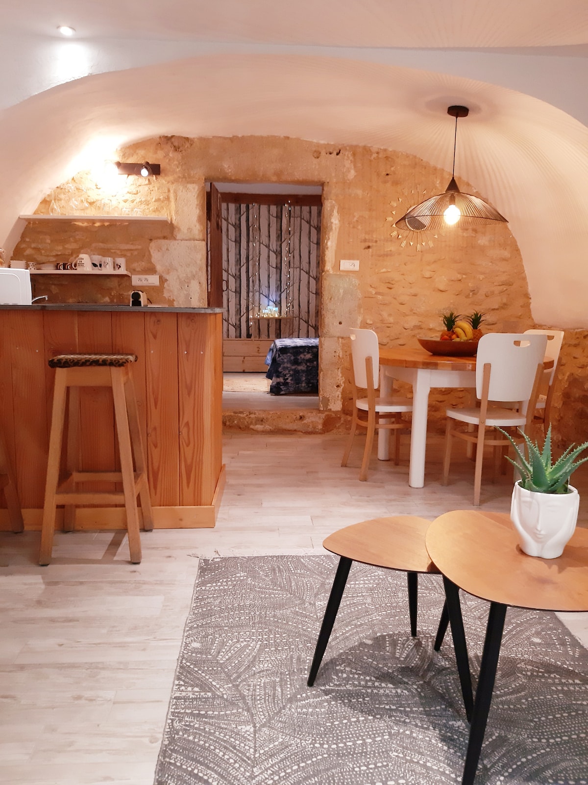 Envie d'une escapade en amoureux ? d'un endroit insolite ? Bienvenu dans notre Mas du XVIII ème siècle entièrement rénové pour vous offrir un séjour proche de la nature. Notre appartement crée dans la fraicheur de voutes en pierre vous fera vivre un séjours original. De sa terrasse ombragée vous profiterez de la vue sur les plantations d'oliviers et de chênes truffiers. Et vous serez accueillis aussi par Lulu & Griotte nos deux chiens qui accompagnent Nadine dans sa récolte de truffes.