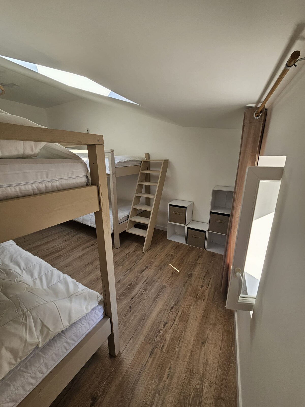 Come and spend your stay in a village with all amenities with the whole family in this chic accommodation. Refurbished in 2025, you will find in this accommodation all the necessary services for a pleasant stay. Accommodation on three levels, including 2 master suites (sleeping area + shower and sink), a dormitory, two toilets, a shower room, a living room open to the equipped kitchen. A courtyard allows you to enjoy the outdoors to share your meals.