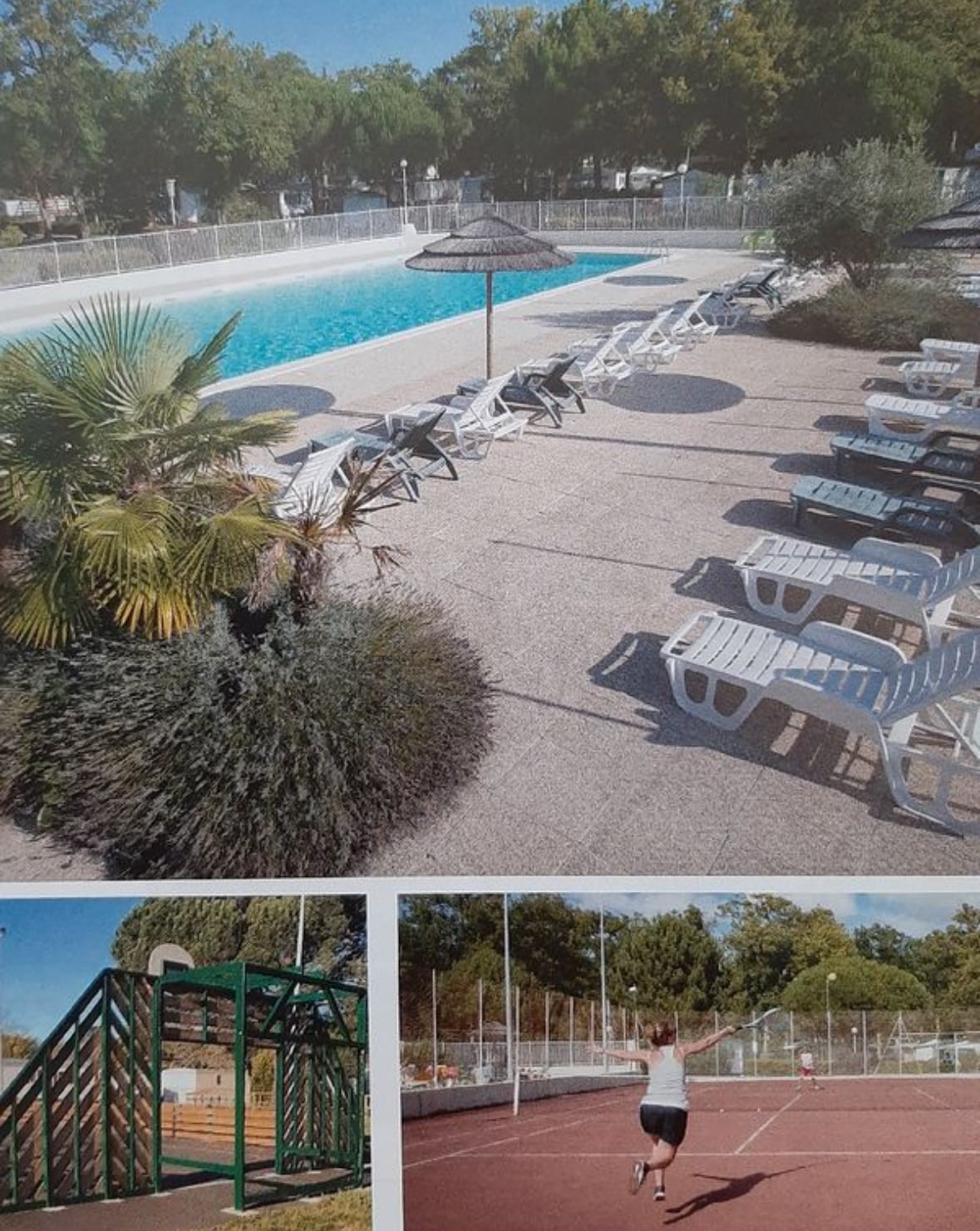 Camping "Les Tamaris" *** La Cotinière, Ile d'Oléron. Quiet and family-friendly campsite. Located 100 m from the sea, 400 m from shops and 500 m from the port. Swimming pools open from May 15 to September 15. Heated and supervised swimming pool in high season, snack and takeaway in high season, secure playgrounds, ping-pong... Bike rental Free WiFi access from the campsite reception. Fully equipped mobile home rental, 2 bedrooms, TV, washing machine... Shaded arbor, sunbathing...