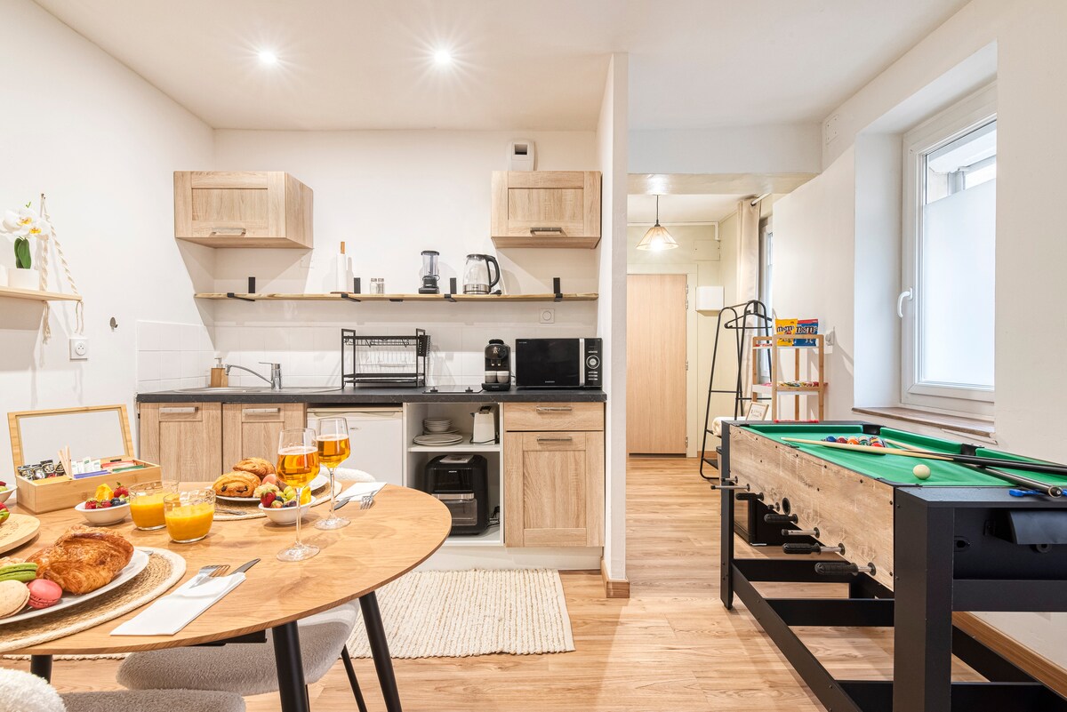 Renovated house with quality amenities (2-seater spa bath, traditional Finnish sauna, etc.). Great for a relaxing romantic stay. House located 7 minutes from Angers city center in a quiet, wooded area and 500 m from a park offering beautiful walks. Visitors are not allowed. We sincerely ask that our guests keep the place quiet and respectful for the comfort of neighbors and future tenants, thank you in advance :)