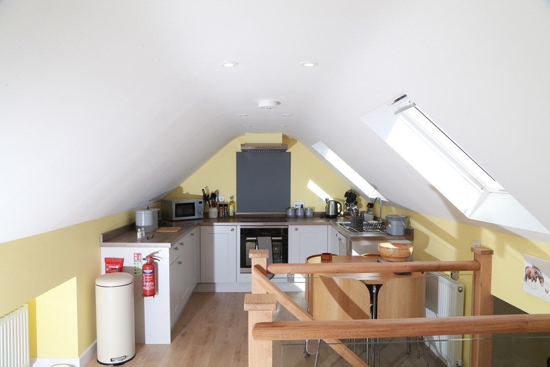 The Mechanic's Rest is our latest addition to the Ellenborough Hall Holiday Flats. The old workshop for the Hall has recently been lovingly restored into holiday accommodation. On the ground floor is the living area with a fully equipped kitchen , a leather sofa, single chair, a TV and a Marshall Bluetooth speaker. There is a modern bathroom with a large walk-in shower. Upstairs on the Mezzanine is a luxury king size bed. Mechanic's Rest is fully self contained with secure off road parking.