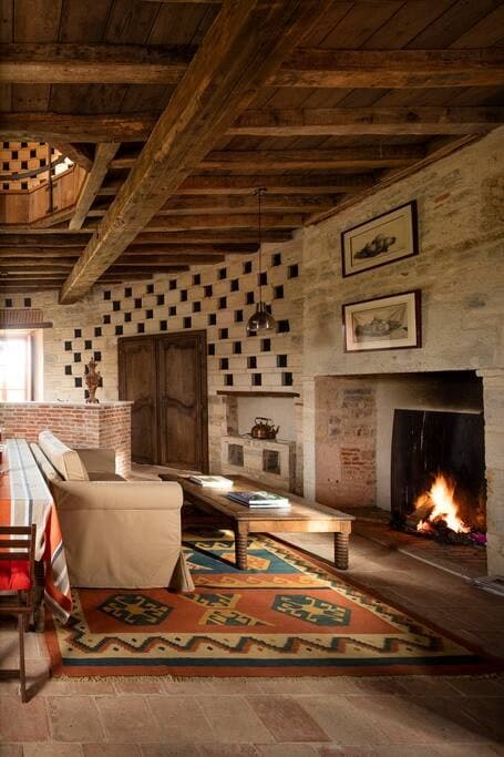 EXCEPTIONAL GITE IN THE DEPENDENCIES OF THE CHATEAU, DATING FROM THE 16TH CENTURY (200 m2) can accommodate up to 6 people: - 1 large bedroom upstairs (1 double bed + 1 single bed) - 1 second large bedroom upstairs (1 double bed) - 1 extra bed on the upstairs landing - 1 bathroom (with bathtub) upstairs - 2 toilets (on the ground floor and upstairs) - 1 large living room - Large period fireplace (in operation) as well as an equipped kitchen open to the dining room. - 1 saddle maker