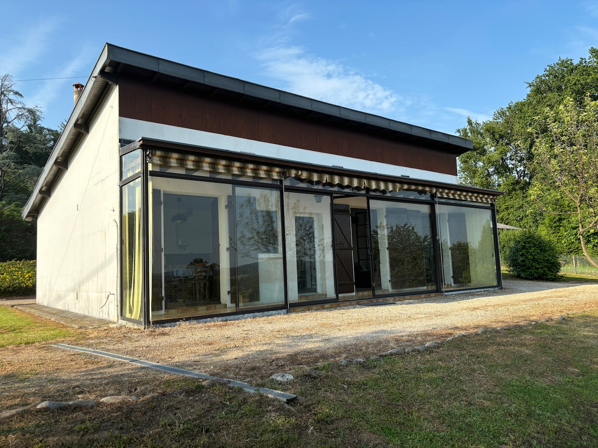 Rental of a cottage in a quiet area with exceptional views Perfect location: Exceptional view, very bright, quiet, swimming pool (pool closed on 09/25/2025) Fully equipped, heating and air conditioning, very comfortable Located 2 minutes from exit No. 20 (A89), it is an ideal stop between Paris-Toulouse and Lyon-Bordeaux (no noise pollution) Motorcycle parking: Sheltered, safe and 20 m from the Gîte Restaurants nearby Possibility to recharge an electric car