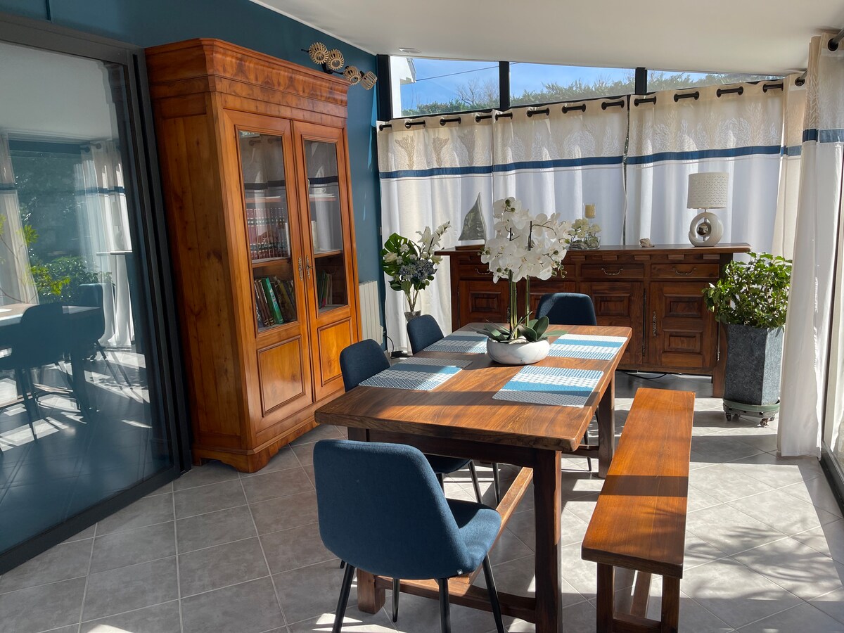 Our modern and fully equipped accommodation is located in the pretty hamlet of Kersaux in Saint Gildas de Rhuys, just 2 km from the sea. Situated halfway between the ocean and the Gulf of Morbihan, this is a true haven of peace, nestled in lush greenery, where you can enjoy a wonderful holiday! Cycle paths start right outside the house, allowing you to explore the peninsula safely by bike! You can also enjoy the 20 m² sun terrace and the adjoining garden.