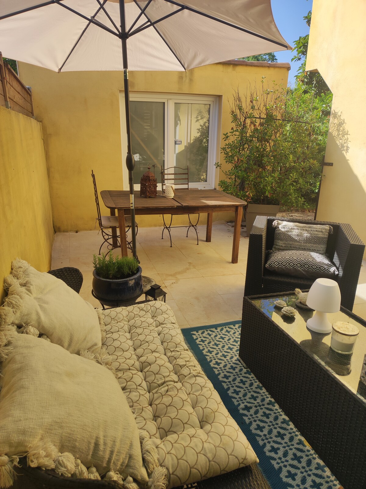 Come and stay in this pleasant independent maisonette located on my quiet and green property. It includes a living room with TV. The kitchen is fully equipped, the bedroom upstairs, a double bed, a dressing room and an adjoining bathroom. You can bask in the sun on the large terrace and share pleasant moments in privacy. You have a secure parking space. 15 min from downtown and 20 min from the beach by car.