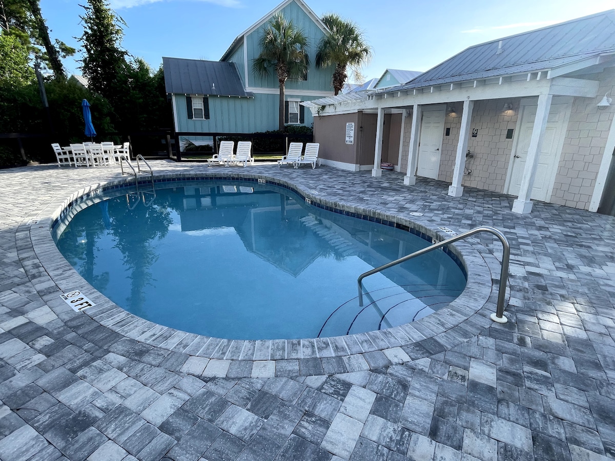 Best location in Port St. Joe! - Gated community w/ 2 pools - 2 Mins to beach - Poolside! Large community pool & hot tub - Steps to parking for easy unloading - Fully equipped kitchen including drip & k-cup coffee makers - Linens, towels & initial supply of paper products - Beach towels & 4 beach chairs provided - Clean, cozy & relaxing cottage recently renovated - We follow Airbnb's enhanced cleaning protocol - 2 screened porches w/ ceiling fans - Florida's best beaches & food minutes away