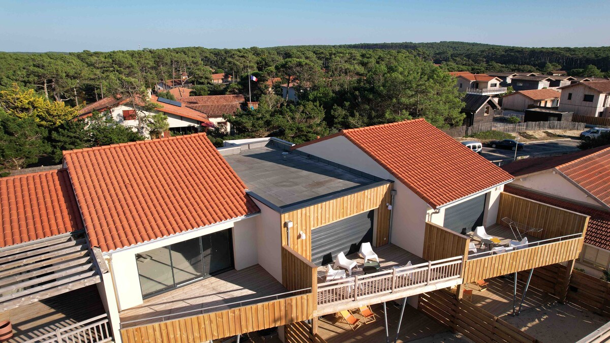 Relaxation 💕 Enjoy direct access to the beach and the entire house You are at the foot of the dune, private parking space against the beach. Wood, sun and sand. 3 bright bedrooms, high ceiling, including 1 children's bedroom with three 90 beds, 2 bathrooms and 2 toilets, laundry room with washer and dryer. Very isolated house, warm in winter, cool in summer, very good sound insulation. Optimized kitchen and enclosed solarium garden. Air conditioning, a nest at the beach